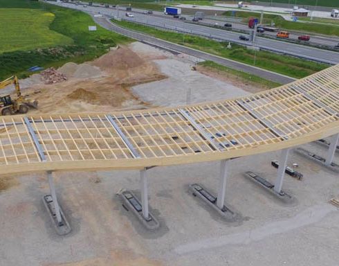 Neubau einer Raststätte mit Tankstelle, Tankdach, Wirtschaftshof, Parkflächen.